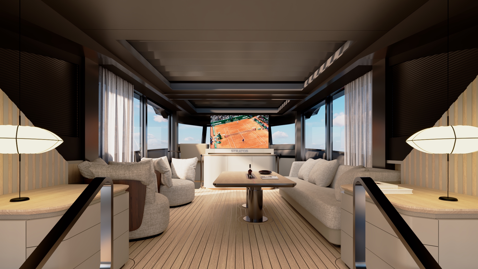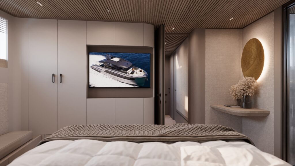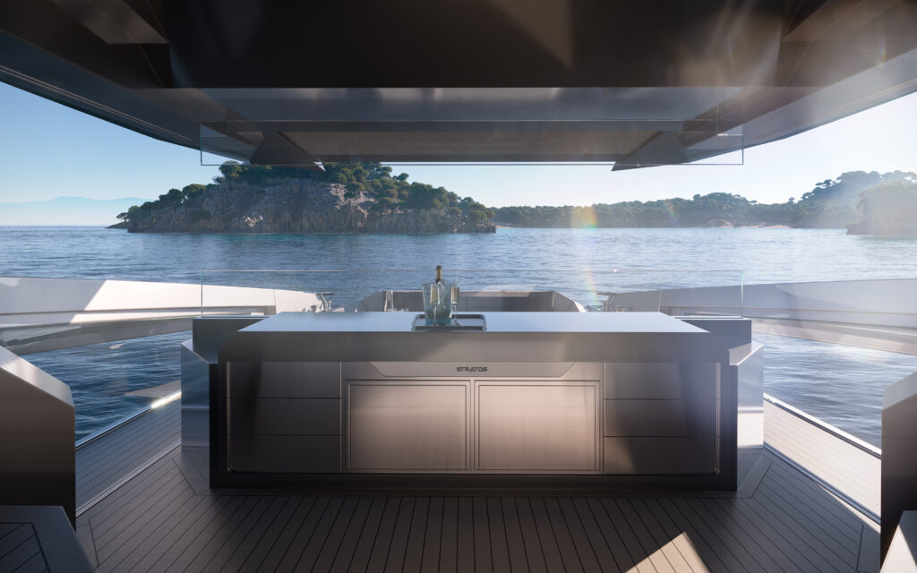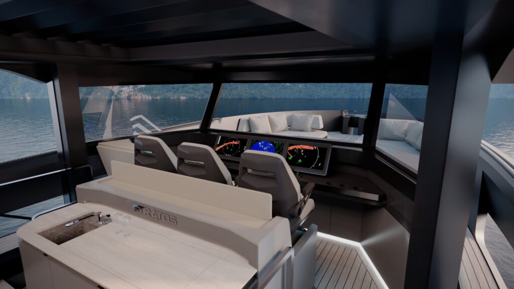 The forward-leaning pilot windows deliver outstanding visibility and enhance safety at high speeds, ensuring full control when cutting through the water. To further elevate performance, the carbon composite superstructure of the Stratos DB75 provides exceptional stability at sea, resulting in a smooth, controlled and truly exhilarating experience, regardless of conditions.