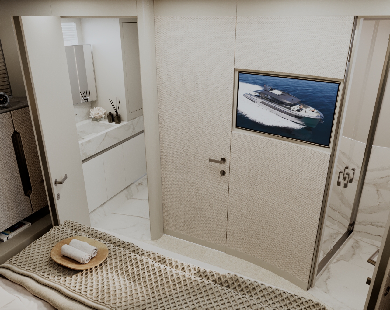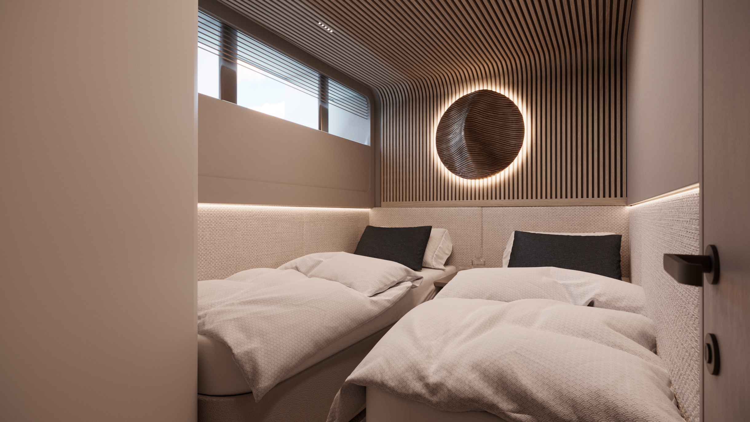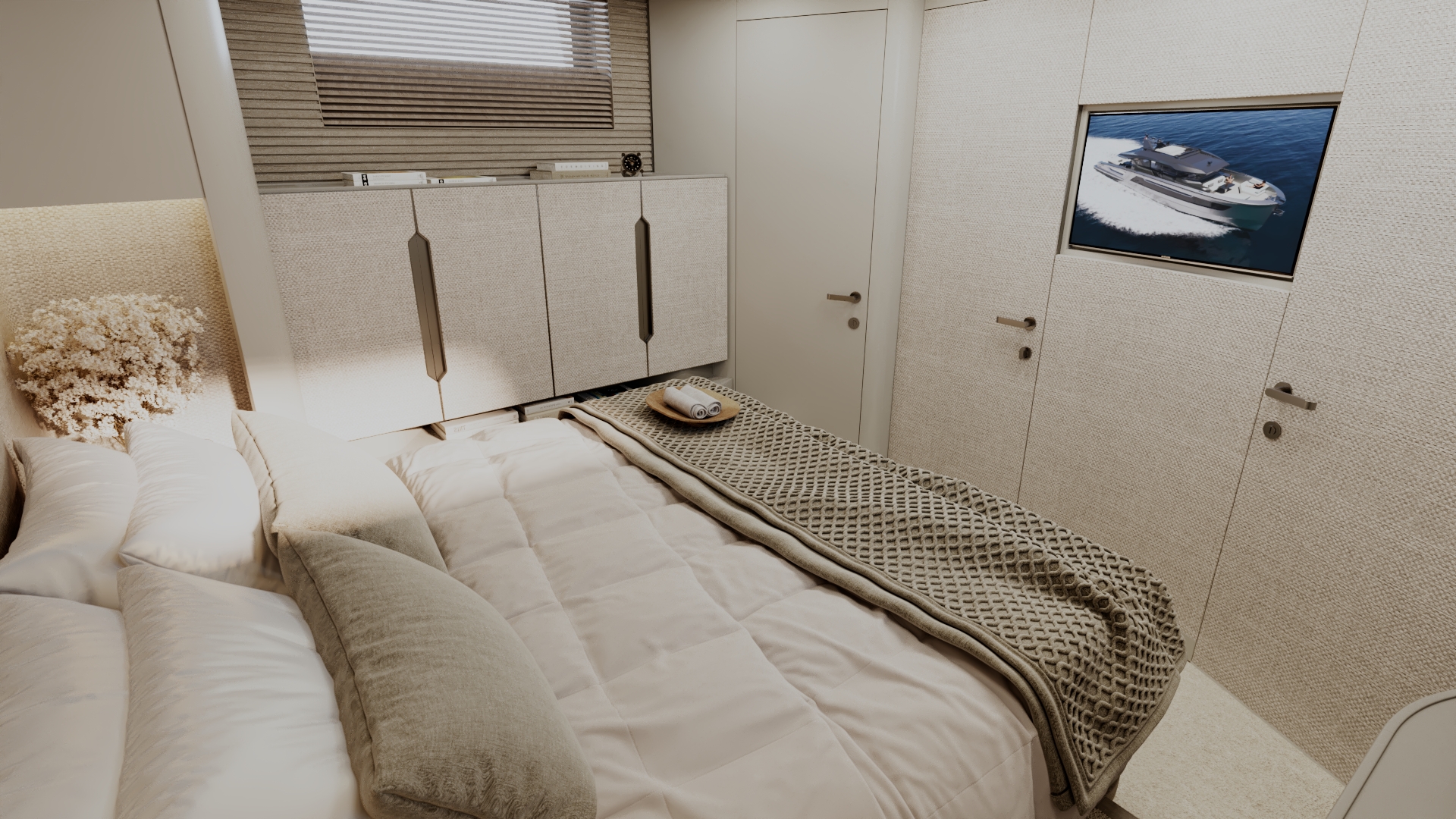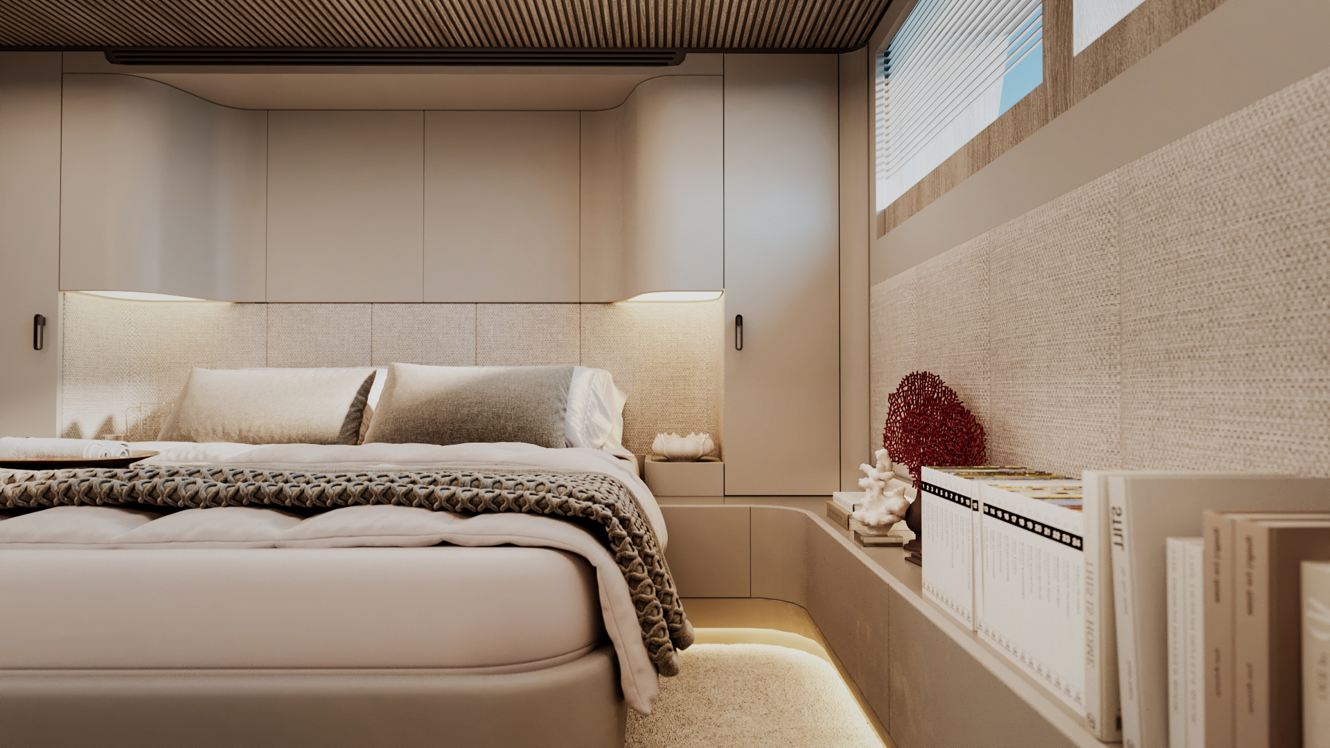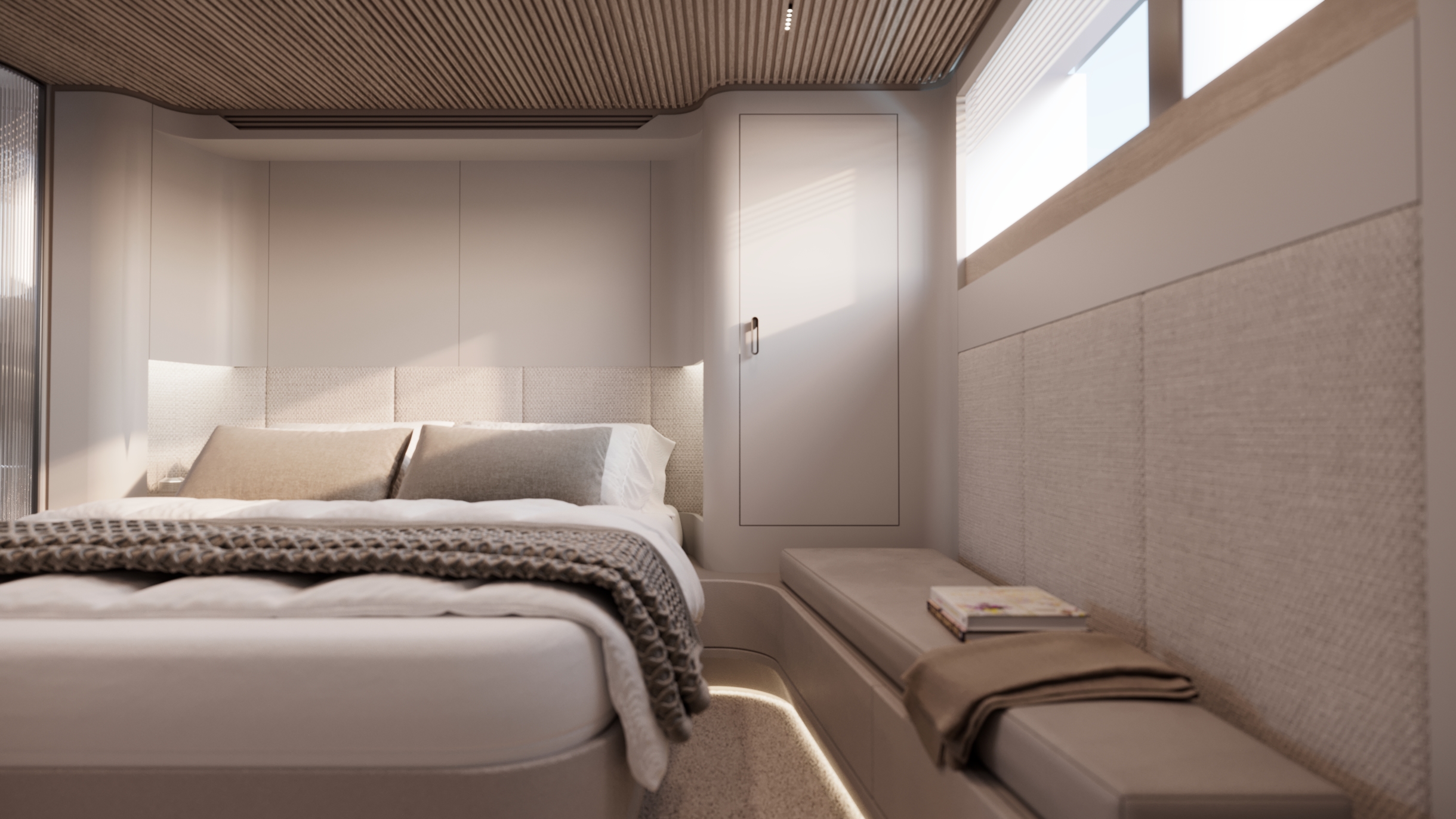 Generous natural light floods the interior, while uninterrupted ocean views ensure a seamless connection with the sea, whether seated or standing. Every element is designed to move with the surroundings, enhancing the sense of freedom on board.