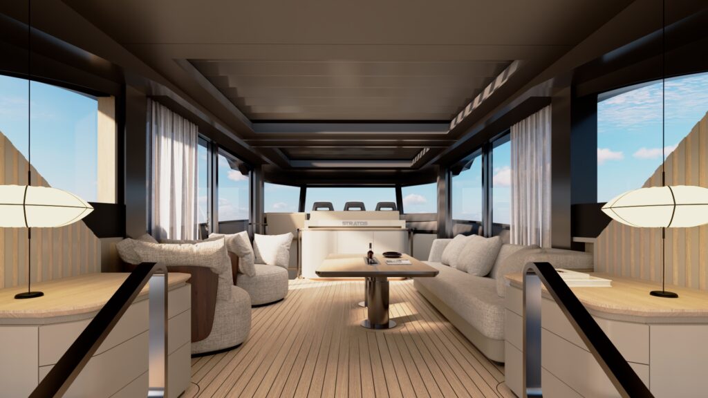 The Stratos DUTCH BUILT 75 embodies the brand’s unmistakable sporty character through its bold, powerful lines and commanding presence. Designed to perform across all seasons and climates, the Stratos DB75 is equipped with an exceptionally strong carbon hardtop, allowing confident cruising even in the most demanding weather conditions.
